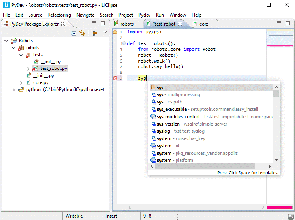 PyDev是一种功能丰富的开源Python IDE for Eclipse。它支持Django集成、代码完成、带自动导入的代码完成、类型提示和代码分析。