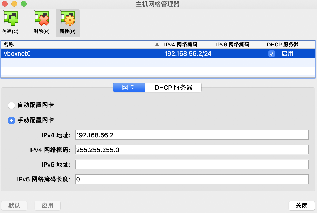 在开始之前,需要在 VirtualBox 的全局配置上加一块网卡,如下图所示: