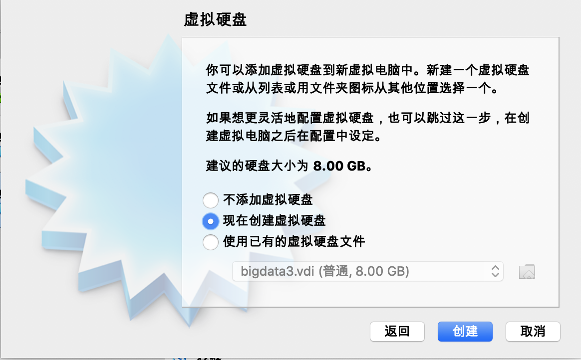 然后就是创建虚拟硬盘,由于是无图形界面的 Centos系统,默认的配置也够用了: