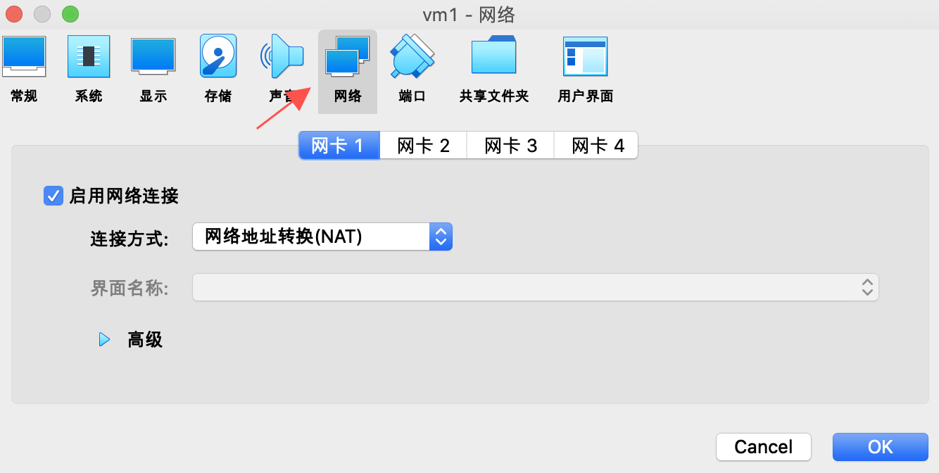 再选择网络,默认情况下只启用了一块网卡,为了满足后续的需求,我们需要再开启一块网卡: