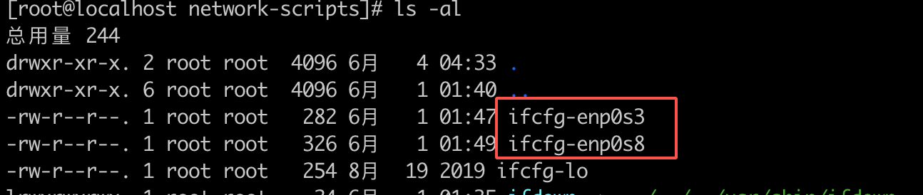 ifcfg-enp0s3 就对应 NAT 配置的那张网卡,ifcfg-enp0s8 就对应 host-only 配置的网卡。