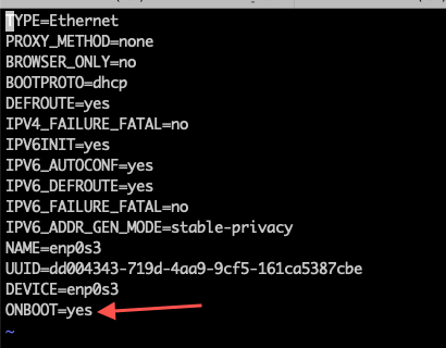 把 ONBOOT 的值改成 yes 就可以,表示开机启用这个网卡,配置完 NAT 之后,就可以在虚拟机内访问互联网了。