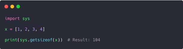 默认的sys模块包含一个getsizeof函数,该函数接受一个对象并返回其字节大小。对象可以是任何类型。
