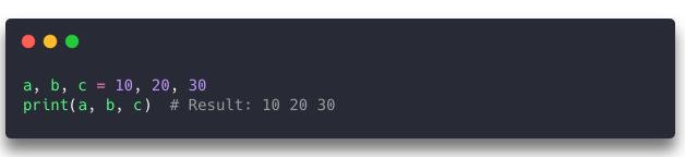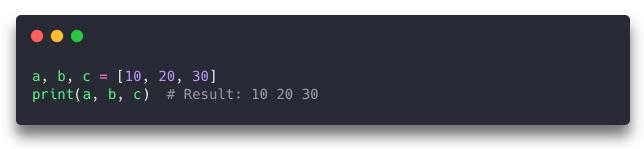 当对序列(如列表或元组)进行解构/解包时,这也会起作用,并且是将序列元素分配给单个变量的更优雅的方法,因为不需要使用循环或单独索引序列的每个元素。