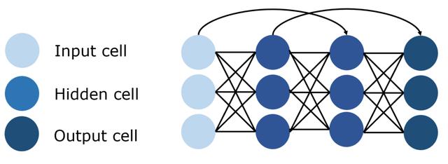 深度前馈神经网络的一个问题称为消失梯度问题,即当网络太长而无法在整个网络中反向传播有用信息时。 随着更新参数的信号通过网络传播,它逐渐减小,直到网络前端的权重完全没有改变或被利用为止。