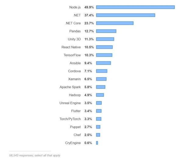 Node.js允许程序员在服务器端使用Javascript语言和脚本,这很快导致它在全世界范围内被迅速采用。Node.js在过去十年里慢慢爬上了流行的阶梯,并根据这次Stack overflow的调查,成为2019年最受欢迎的技术。
