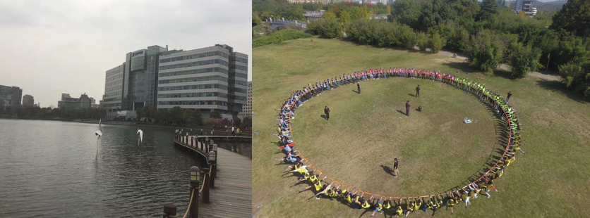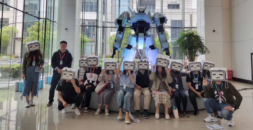 入职办理完成后,就到了新人试训环节,根据当天入职人数进行分组,每一组领取一个任务,任务就是找到这栋大楼里的相关标志性地方,然后带上头套在这些地方拍摄小组集体照。然后将照片发到群里。哪个小组最先完成任务,就算获胜,获胜会有小礼品。这个操作还是不错的,可以让新人快速熟悉公司的楼层和方位。
