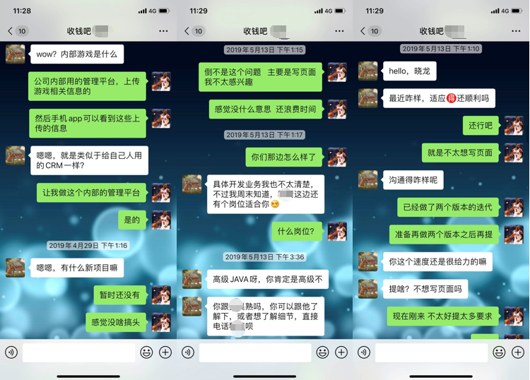 就在拿到offer的第三天晚上10点钟,突然收到前领导的电话,问我的现状,这为我从B站离职留下了伏笔。说他们组最近在招人,他刚才在Boss职聘上看到我的简历了。我说了现状。这个领导是我2017年一二月份入职的那家公司的技术经理,当时公司主要做中国人境外旅游的,类似携程的业务,也是创业公司,200多人,公司业务出海的第一站选择的是韩国(收支当时基本能持平了),当时正好遇上美国在韩国部署萨德导弹,中国人去韩国旅游的突然变少,为了维持住公司的运营,老板选择裁员,我当时入职两个月还没转正,属于第一批被裁的。虽然当时他和老板说能不能留下我,但是老板还是要求全部裁掉。在我2017年3月份离开后,这家公司又经过了两轮裁员,最终在2018年上半年倒闭了。公司倒闭后,他和当时的一个HR(我们是2015届湖南大学校友,关系很好)去了收钱吧。他刚去收钱吧三个月给我打过电话,问我怎么样,要不要换工作,我说暂时没有换工作的打算,当时已经是收钱吧集团客户部的技术老大了。现在还有一个名额空缺,正好看到我的简历,问问情况。我说已经拿到offer了,他说没关系,你先去B站看看,如果考虑感觉不行,来收钱吧也可以。我说先看看再说。