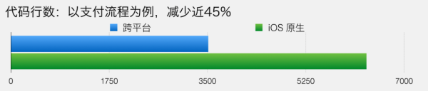 以核心支付流程代码为例,跨平台需要 3512 行,iOS 原生需要 6328 行。减少了近 45% 的代码。