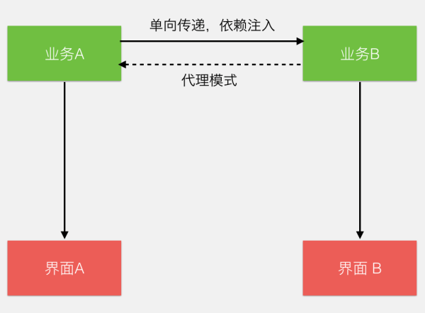 如果数据修改需要通知前序流程,使用代理模式通讯。
