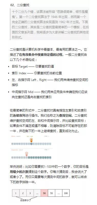 解决这道题目,要用到的是二分查找算法。作者用图示的方法演示了二分查找的过程。这样的漫画演示方式让读者能够清晰明了地理解算法的原理。