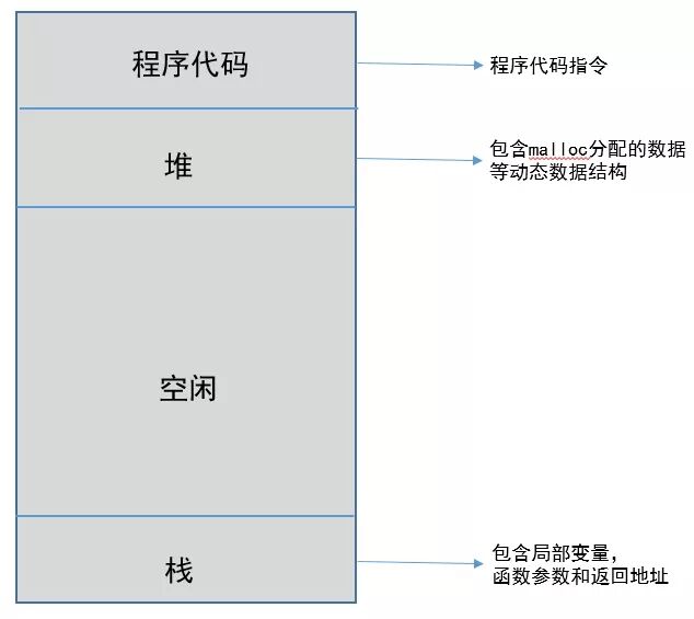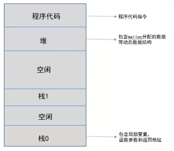 当程序需要运行时,操作系统将代码和所有静态数据记载到内存和进程的地址空间(每个进程都拥有唯一的地址空间,见下图所示)中,通过创建和初始化栈(局部变量,函数参数和返回地址)、分配堆内存以及与IO相关的任务,当前期准备工作完成,启动程序,OS将CPU的控制权转移到新创建的进程,进程开始运行。