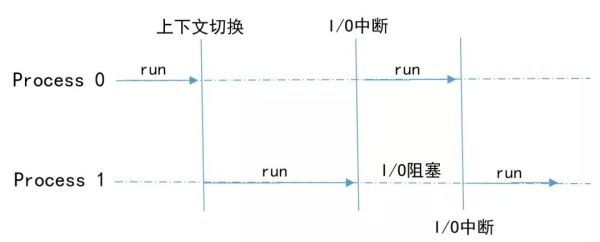 进程直接特定的机制和遇到I/O中断的情况下,进行上下文切换,轮流使用CPU资源