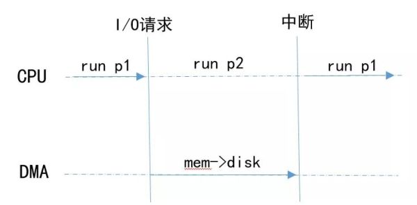 下面主要解释一下I/O密集型的情况。与I/O设备交互,目前最常用的解决方案就是DMA。