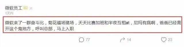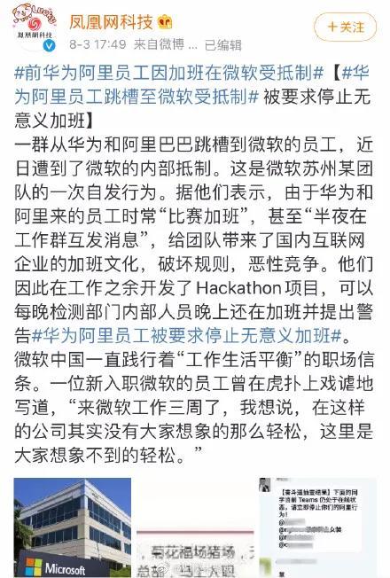 近日,网传华为阿里员工入职微软后,经常自主 996 还在同事群里互相打鸡血,引起了其他老员工的不满,被要求停止无意义加班。