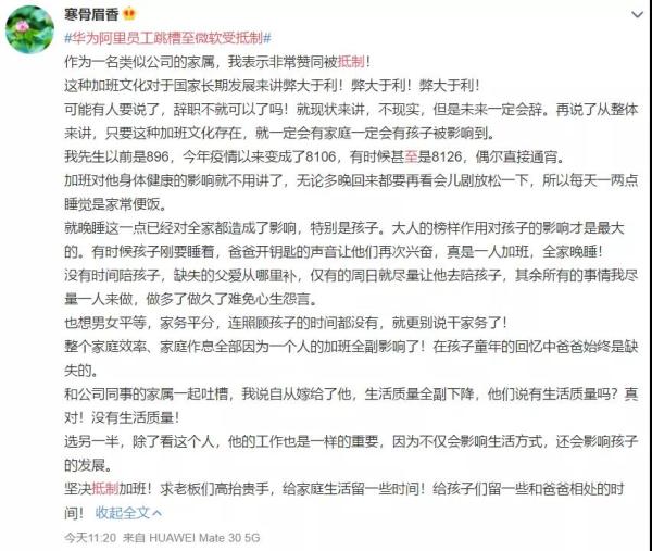 据他们表示,由于华为和阿里来的员工时常“比赛加班”,甚至“半夜在工作群互发消息”,给团队带来了国内互联网企业的加班文化,破坏规则,恶性竞争。