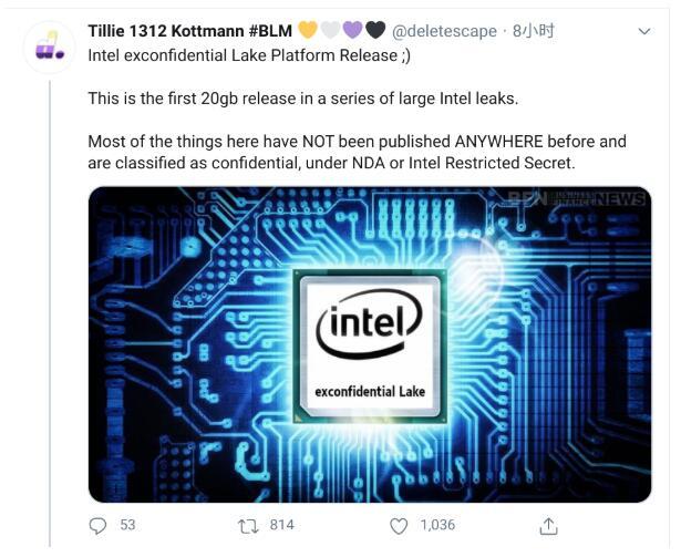 网传 Intel 有 20G Lake 系列处理器相关的机密文档与源码遭到黑客泄露,这些内容大多数以往从未在任何地方发布过,并且被归类为“机密级别”。泄露者还扬言,接下来还会分享更多劲爆资料。