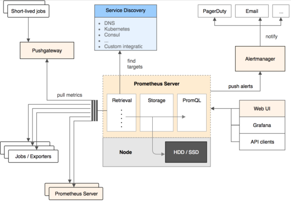 它和 Open-Falcon 最大不同在于:数据采集是基于 Pull 模式的,而不是 Push 模式,并且架构非常简单。