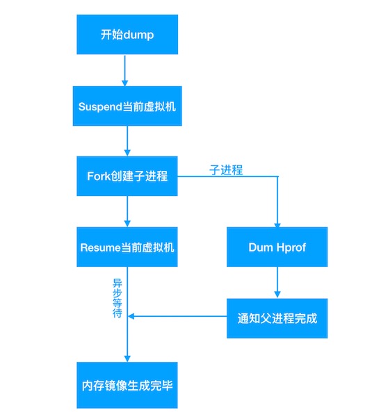 采集内存镜像传统方案会造成应用完全冻结长达几秒,期间用户完全不能操作,严重损害用户体验。快手利用系统内核COW(Copy-on-write,写时复制)机制,每次dump内存镜像前先暂停虚拟机,然后fork子进程来执行dump操作,父进程在fork成功后立刻恢复虚拟机运行,整个过程对于父进程来讲总耗时只有几毫秒,对用户完全没有影响。