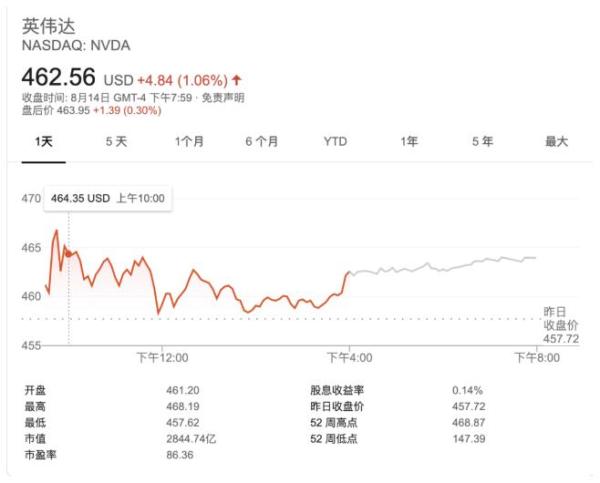黄教主霸主梦越来越近,英伟达股价去年同期相比上涨95%
