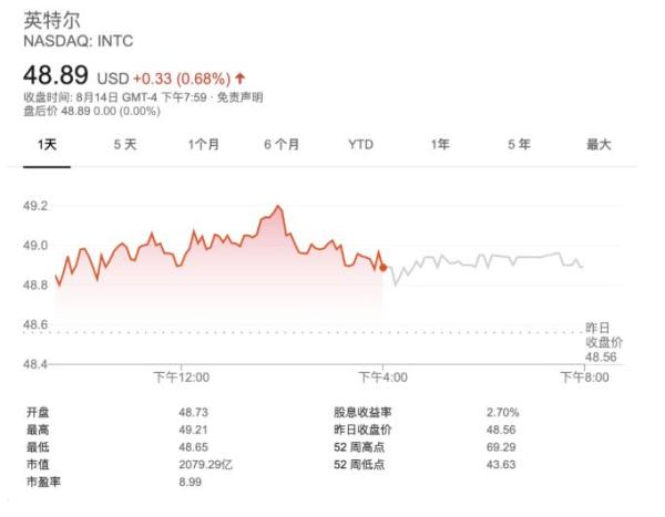 wccftech报道,迄今为止,英伟达的股价已经距离去年同期上涨了95% 左右,超过了英特尔市值765.4亿美元。