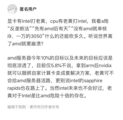 若交易达成英特尔最闹心,网友:英特尔AMD或联手对抗英伟达+Arm
