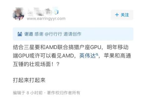 网友表示,「结合三星和AMD联合搞猎户座GPU,明年移动端GPU或许可以看见AMD、英伟达、苹果和高通互锤的壮观场面!?」