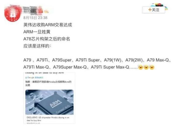这位网友的评论瞬间亮了!他给演算了一下英伟达收购Arm之后的芯片命名。