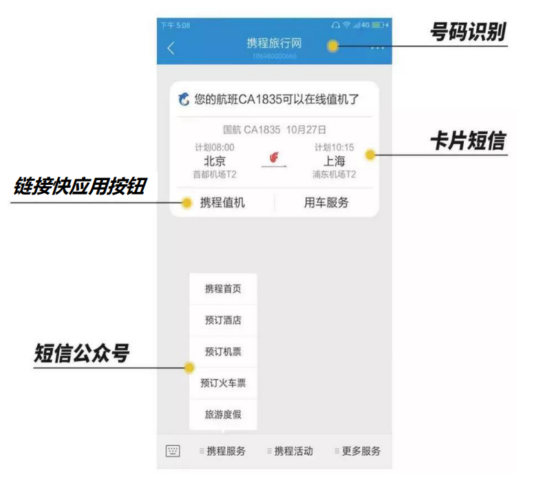 5G消息,是基于RCS国际标准的短信升级产品,5G消息可以发送的信息不限于纯文字,还有图片、视频、音乐、定位等富媒体内容。客户可通过以上消息直接进行交互办理。