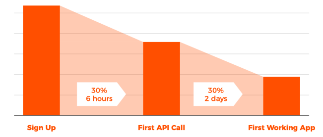 对于与大多数API-First公司来说,产品经理持续跟踪的第一个、也是最重要的标准是开发者激活(developer activation)。具体而言,产品在采用环节上会涉及到如下步骤: