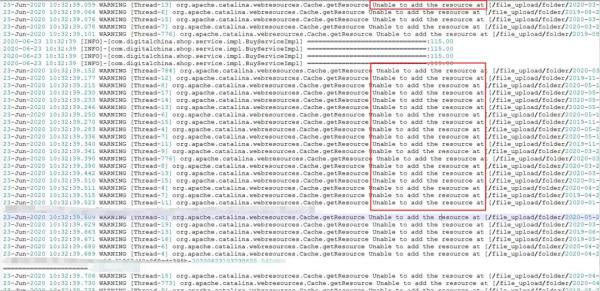 在conf/context.xml增大缓存 <Resource cachingAllowed = "true" cacheMaxSize = "102400" />