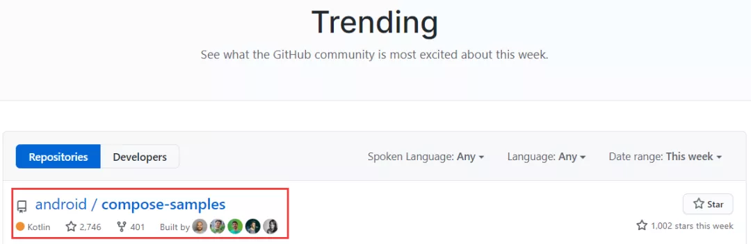 最近Github上有一个项目已经霸榜第一很多天了,这个项目包含一组单独的Android Studio项目,能够帮助你更好的学习Compose。