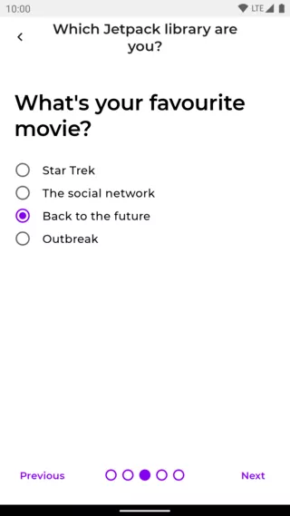 这是调查应用程序,在Compose中展示了文本输入,验证和UI状态管理,复杂程度简单。