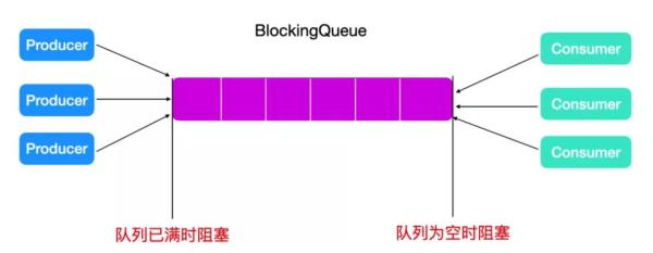 BlockingQueue 一般用于实现生产者 - 消费者 队列,如下图所示
