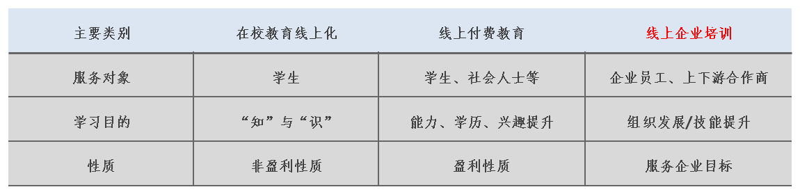 从使用场景和现实需求功能匹配角度上来看,目前的线上学习可以粗略的分为以下三大类别(表1):
