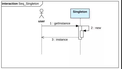 package FactoryMethod; public class FactoryPattern { public static void main(String[] args) { Factory factory = new ConcreteFactoryA(); Product product = factory.createProduct(); product.use(); } } //抽象产品:提供了产品的接口 interface Product { public void use(); } //具体产品A:实现抽象产品中的抽象方法 class ConcreteProductA implements Product { public void use() { System.out.println("具体产品A显示..."); } } //具体产品B:实现抽象产品中的抽象方法 class ConcreteProductB implements Product { public void use() { System.out.println("具体产品B显示..."); } } //抽象工厂:提供了厂品的生成方法 interface Factory { public Product createProduct(); } //具体工厂A:实现了厂品的生成方法 class ConcreteFactoryA implements AbstractFactory { public Product createProduct() { System.out.println("具体工厂A生成-->具体产品A."); return new ConcreteProductA(); } } //具体工厂B:实现了厂品的生成方法 class ConcreteFactoryB implements AbstractFactory { public Product createProduct() { System.out.println("具体工厂B生成-->具体产品B."); return new ConcreteProductB(); } }2 单例模式(Singleton)