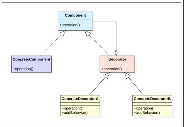 尽量保持具体构件类Component作为一个“轻”类,也就是说不要把太多的逻辑和状态放在具体构件类中,可以通过装饰类。