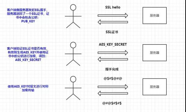 这里我只是画了个示意图,其实真正的 SSL 握手会比这个复杂的多,但是性质还是差不多,而且我们这里需要关注的重点在于 HTTPS 是如何防止中间人攻击的。