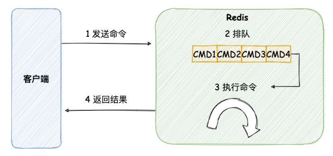 只要 3 这个过程执行命令速度过慢,队列其他任务不得不进行等待,这对外部客户端看来,Redis 好像就被阻塞一样,一直得不到响应。