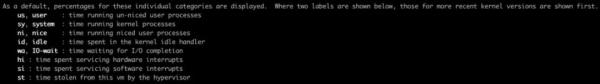 为了便于定位问题,大多数性能统计工具都将这4类时间片进一步细化成了8类,如下为TOP对CPU时间片的分类。