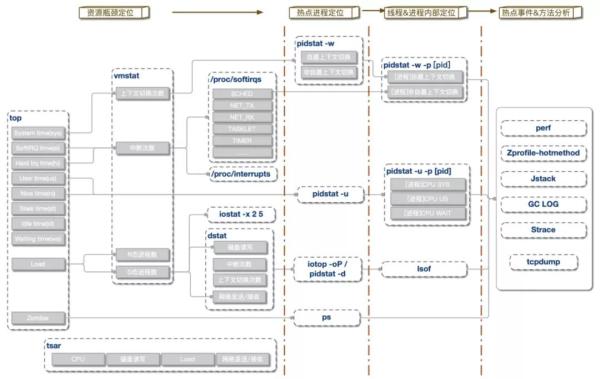 利用现有常用的工具,我们常用的排查策略基本如下图所示:
