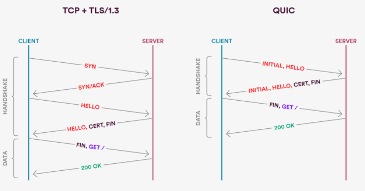 QUIC 层来实现自己的丢包重传和拥塞控制,还有出于安全的考虑我们都会用 HTTPS ,所以需要多次握手。