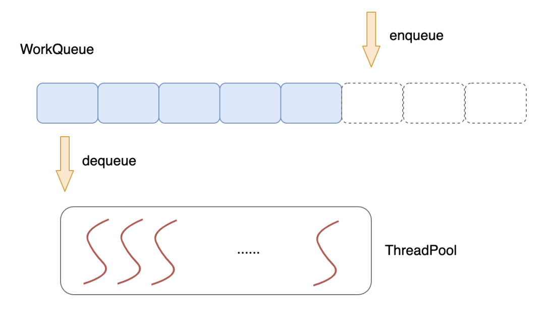 我们可以在程序一开始启动后就批量启动一波工作线程,而不是在有请求来的时候才去创建,使用一个公共的任务队列,请求来临时,向队列中投递任务,各个工作线程统一从队列中不断取出任务来处理,这就是线程池技术。
