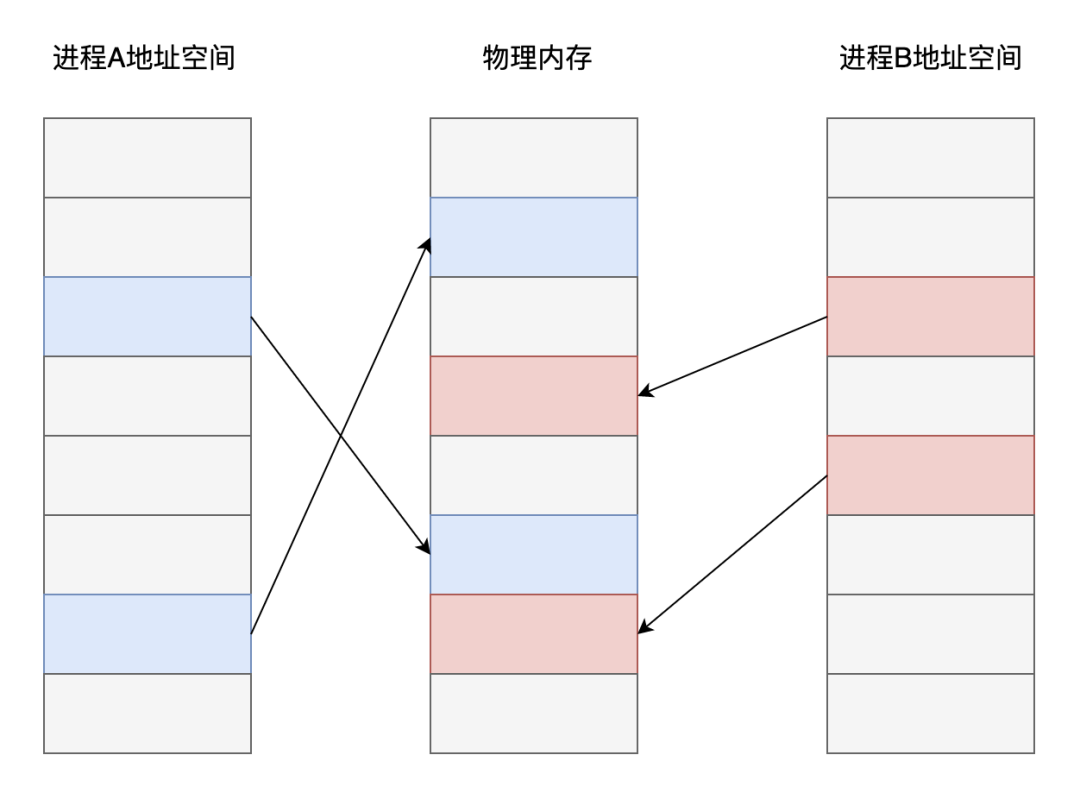 而共享内存这种进程间通信方案的核心在于:如果让同一个物理内存页面映射到两个进程地址空间中,双方不是就可以直接读写,而无需拷贝了吗?