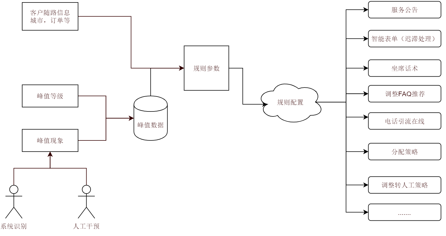 峰值手段比较单一:对于怎么处理当前的峰值,在客户侧往往也只能在发现问题的业务中上线一个通用公告。上线公告的速度也比较依赖于公告的编写速度和对于当前场景的判断。同时相关处理的话术也需要层层传达到全国的多个职场。
