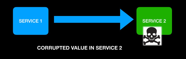 如果服务 2 的数据(值)已损坏则可能会发生拜占庭故障,即使服务看起来运行得很好,比如下面的例子: