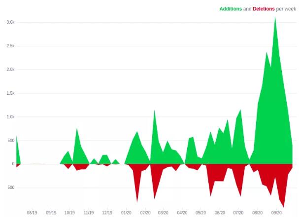 该图显示了随着切换时间的临近,我们用于维护 FINN 基础架构的一个存储库的更改频率不断增长