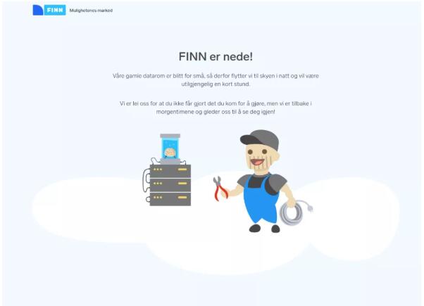 转换期间在 FINN.no 上显示的静态后备页面