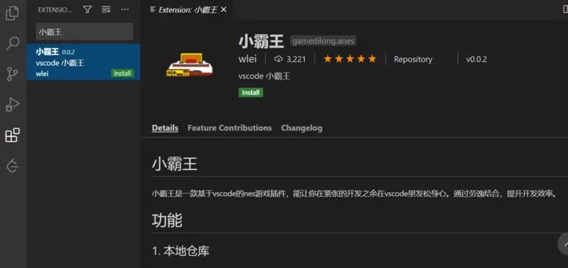 安装和其他的vscode插件一样,直接在插件市场搜索 ‘小霸王’ 点击安装即可。