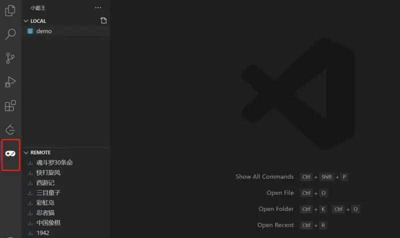 安装完成后,再vsocde左侧左侧面板会有插件入口,点击即可进入游戏列表界面